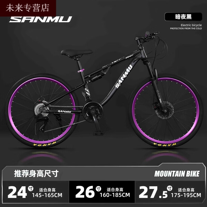 SMVP法斯特双减震软尾山地车越野青少年2410到12-18岁学生变速男款 暗夜黑-顶配版-送骑行大礼包 30速 27.5寸