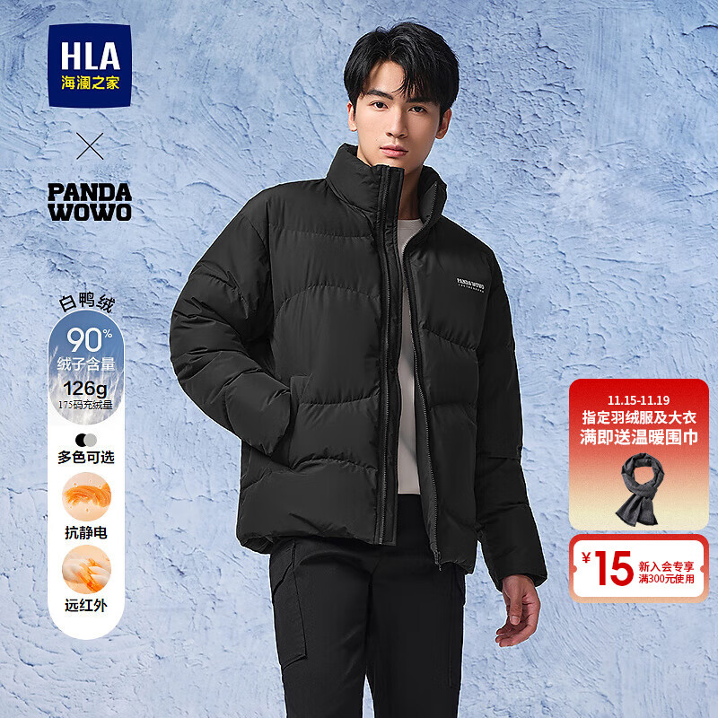 海澜之家羽绒服男25新款远红外保暖立领外套男冬季 黑色7L M 170/88A 推荐125~136斤