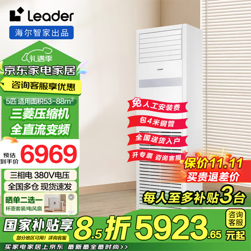 海尔【国家补贴立减20%】5匹柜式空调 中央空调5p立柜式商用办公室空调柜机变频节能一级能效380v电压 5匹 二级能效 +变频自清洁+性价比优选