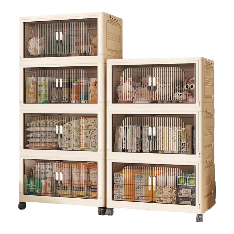 京东物流 免安装橱柜零食储物柜带轮可折叠鞋柜大容量收纳柜 【加厚】60cm面宽-奶油黄 5层