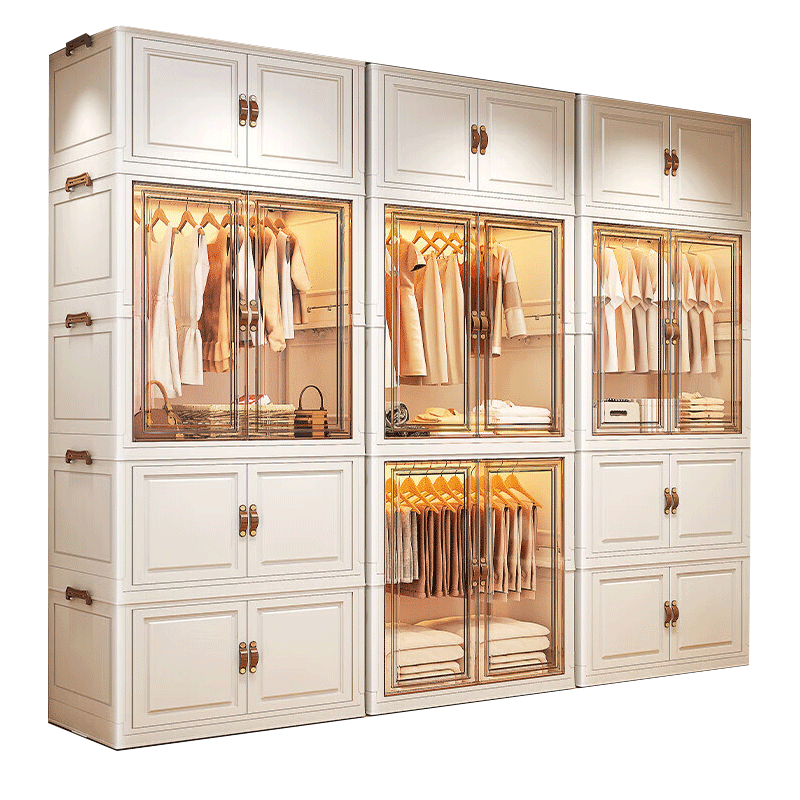 BABY VIEW儿童衣柜收纳柜无甲醛免安装卧室婴儿衣服收纳储物柜简易橱柜折叠 75cm面宽50*207.5【1柜3箱】实白 【送衣架10个/滑轮4个】