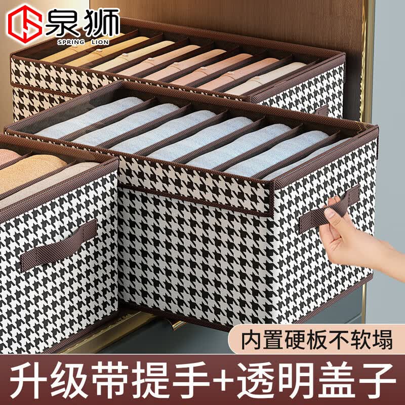 泉狮裤子收纳神器 分格衣物收纳箱衣橱柜分隔整理盒内衣裤衣服分层袋 大6格带盖