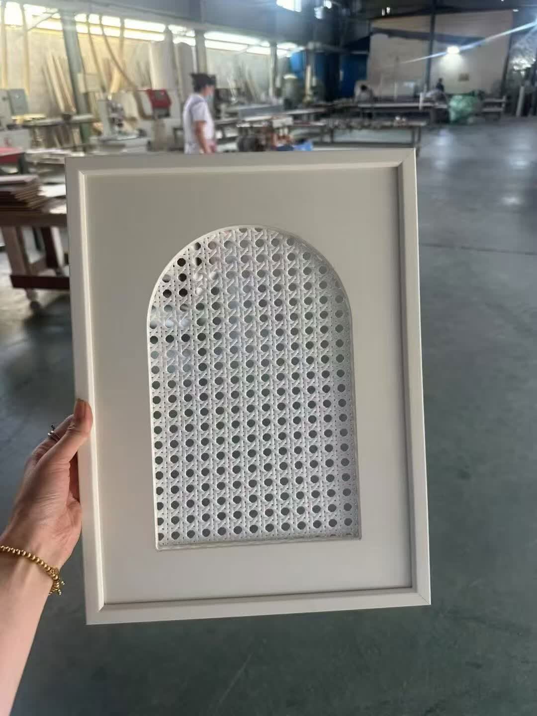 三栖虎实木边框骨骼线门板 藤编草编柜门定做 橱柜门法式奶油风衣 透气藤编