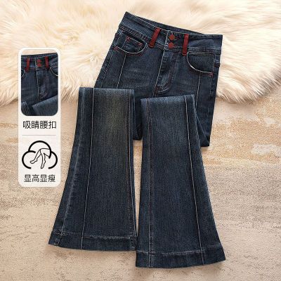 百亿补贴:丝柏舍2025秋装新款女装修身显瘦水洗垂感微喇叭裤设计感牛仔裤