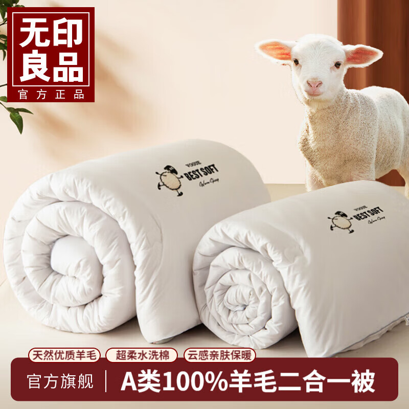 无印良品被子A类100%羊毛被冬被子母被二合一被芯春秋被四季通用单双人 高级白【100%羊毛被 全年可用】 200x230cm 约10斤(4+6斤)