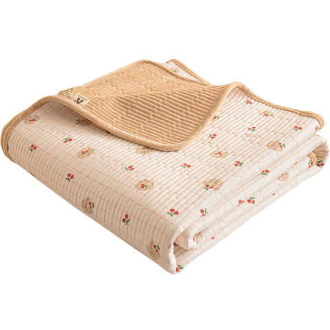 百亿补贴:无印良品床盖双面一棉一绒加厚牛奶绒夹棉床单冬季加绒榻榻米纯棉绒炕盖三 樱桃小熊-卡其【A棉B绒 亲肤裸睡】 200cm*225cm 单床单【适用1.5m床】