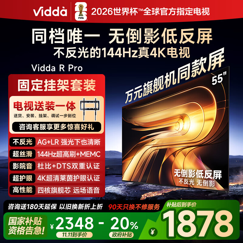 Vidda R Pro 55英寸 海信电视【包安装版-固定挂架送装一体】无倒影低反屏 一级能效以旧换新液晶电视